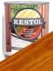 Le mélèze est un bois gras donc difficile à imprégner. C’est une des raisons pour lesquelles on conseille d’appliquer un saturateur ou une huile spéciale à base d’huiles végétales pour bois extérieur (huile flamande par exemple). L’huile de lin est un bon imperméabilisant mais risque de noircir le bois si elle est appliquée sans l’ajout de filtre UV ou pigments. Il faut donc choisir un produit spécialement formulé pour l’extérieur à base d’huile de lin et de pigments comme les huiles Restol ou un saturateur. Ils viendront nourrir en profondeur le mélèze, l’imperméabiliser et le protéger. Ils apporteront un rendu mat en laissant apparent le veinage du bois.